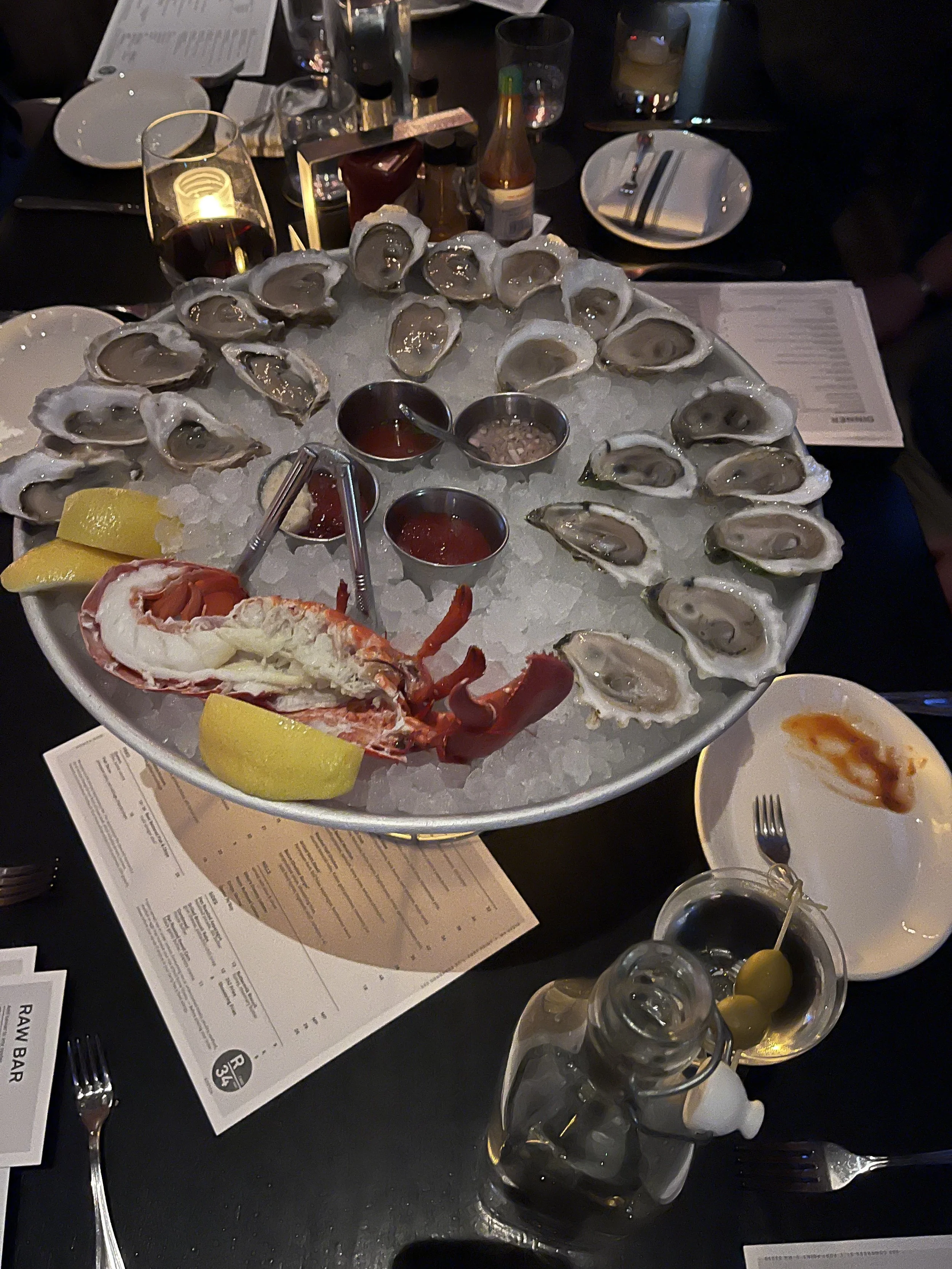 Our group headed to Row 34 in the Seaport district, where sleek modern design meets waterfront views. We kicked things off with multiple rounds of east coat oysters. I ordered the crab cakes and I’d rank them among the best I’ve tasted (second to only T’s of course). Laughter and chatter filled the long table as we shared stores and life advice among friends.